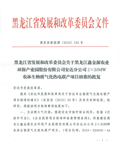 近日,黑龙江省发改委发布了《黑龙江省发展和改革委员会关于黑龙江鑫金源农业环保产业园股份有限Beat365官网安达分Beat365官网2×20M...