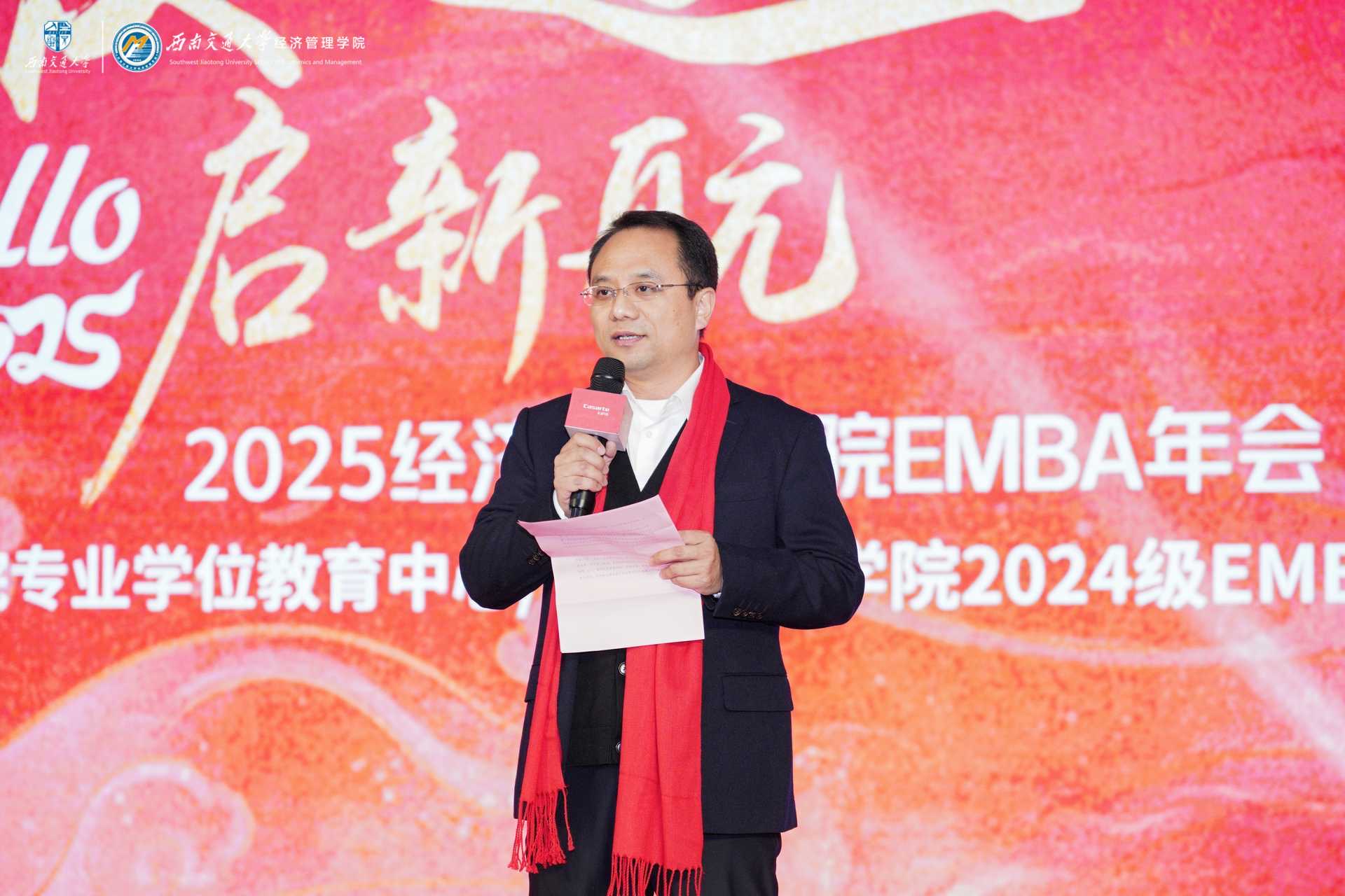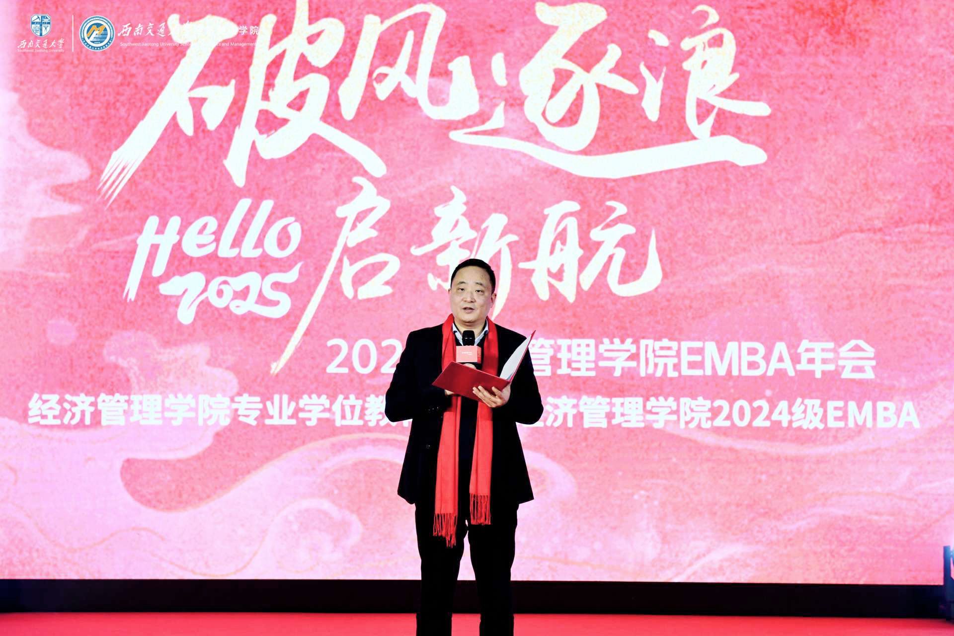 2025年1月4号,球王会体育球王会体育2025“破风·逐浪·启新航”EMBA年会在成都隆重举行,学校党委副书记高平平、学校职能部处相关领导以及学院党政领导班子、师生及校友代表齐聚一堂,共襄盛会。
