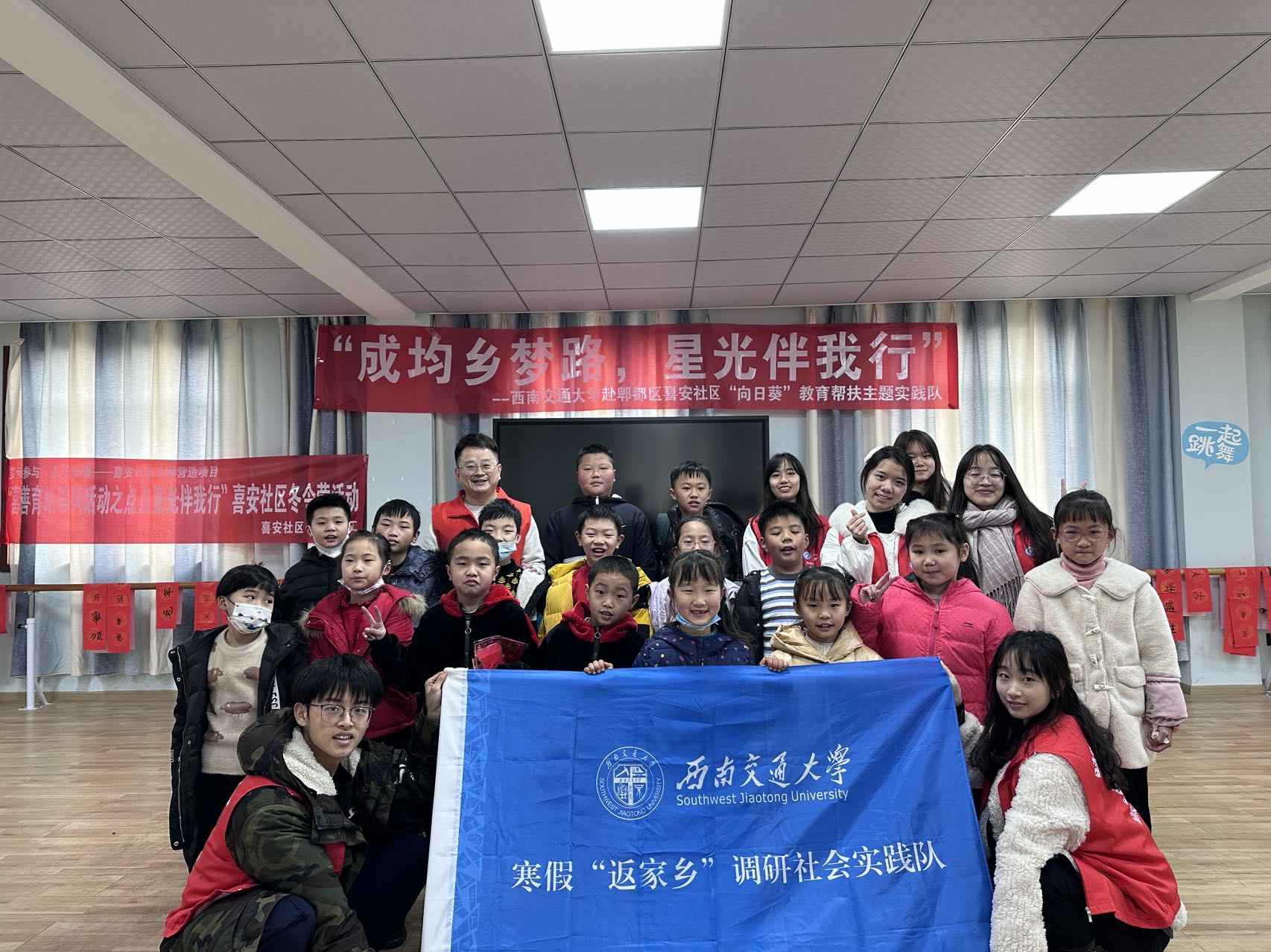 为充分发挥“社会实践作为加强和改进大学生思想政治教育重要途径”的作用,让大学生在实践中长知识、增才干,进一步坚定走中国特色社会主义道路的理想信念,球王会体育“向日葵”寒假“返家乡”志愿服务队联合郫都区安靖街道喜安社区居委会于1月9日走进社区,开展为期5天的“成均乡梦路,星光伴我行”教育帮扶主题社会实践活动。通过开展趣味课程、文化活动、走访送福等形式,助力基层服务,弘扬中华文化,凝聚青年力量。