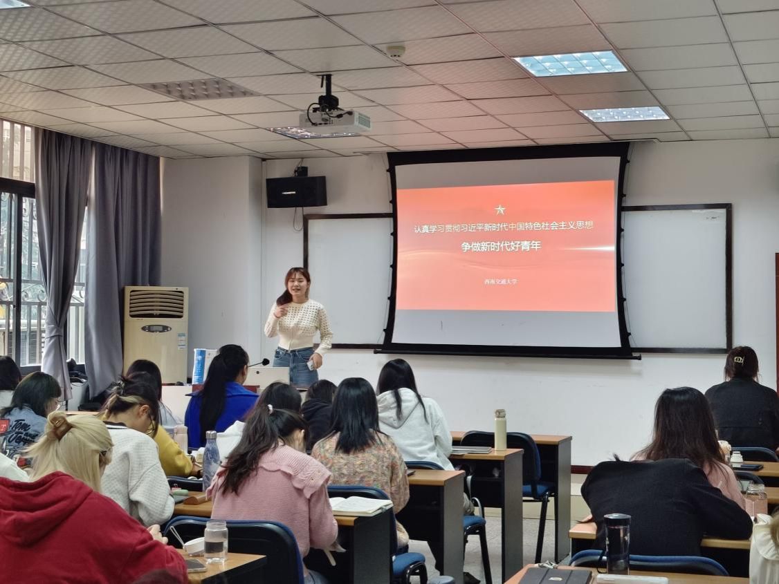 此外,学院团委书记贾佳也结合“思想旗帜”专题,为团员和青年上了一堂生动的团课。