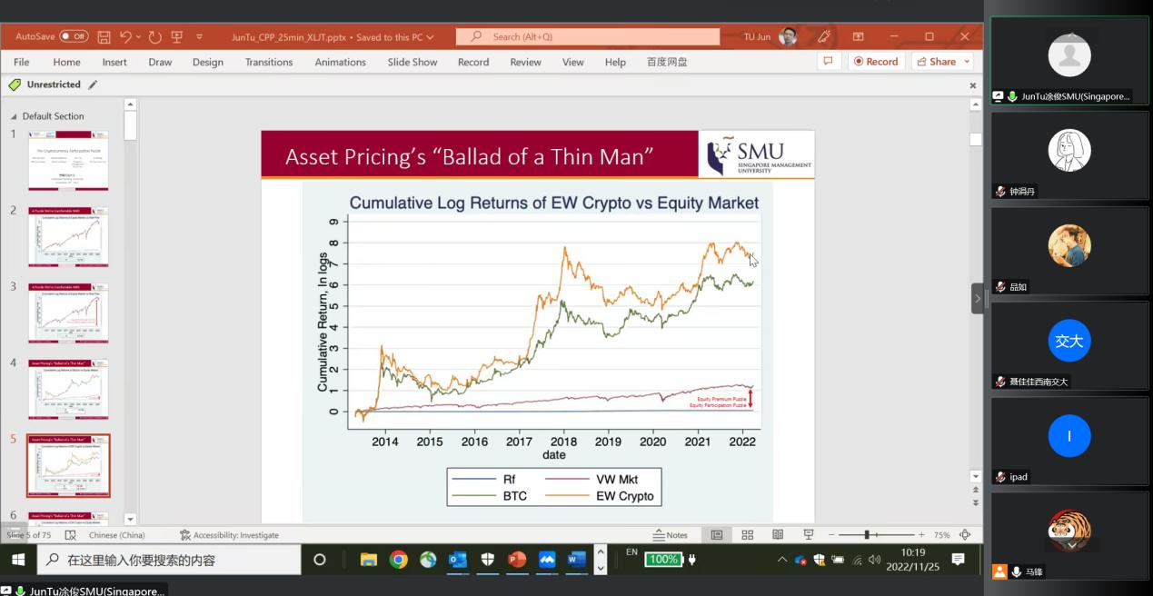 11月25日上午10点,应学院邀请新加坡管理大学凃俊副教授为球王会体育师生以“The Cryptocurrency Participation Puzzle”为主题作线上学术讲座。讲座由副院长聂佳佳教授主持,学院教师及研究生积极参与了本次讲座。