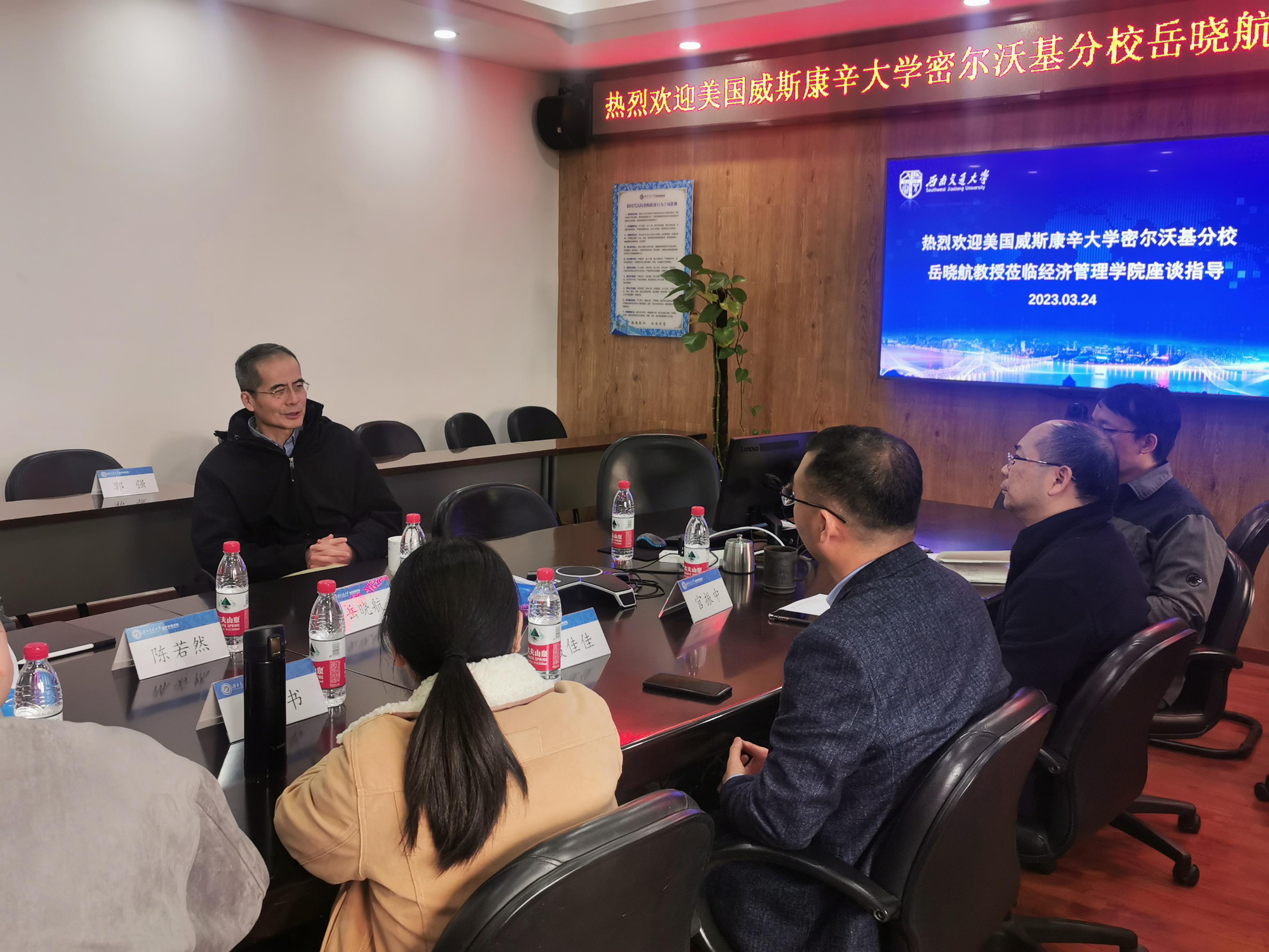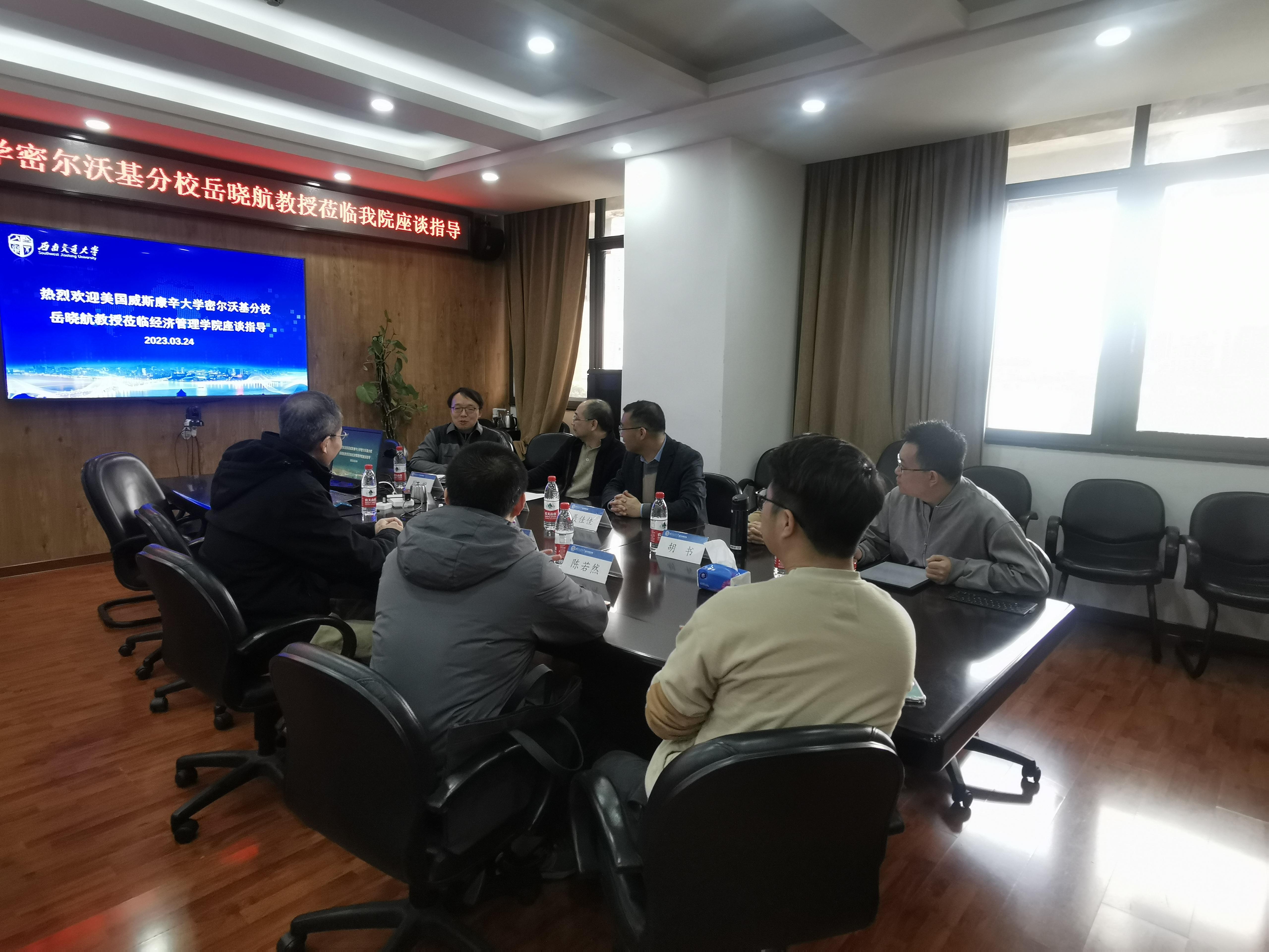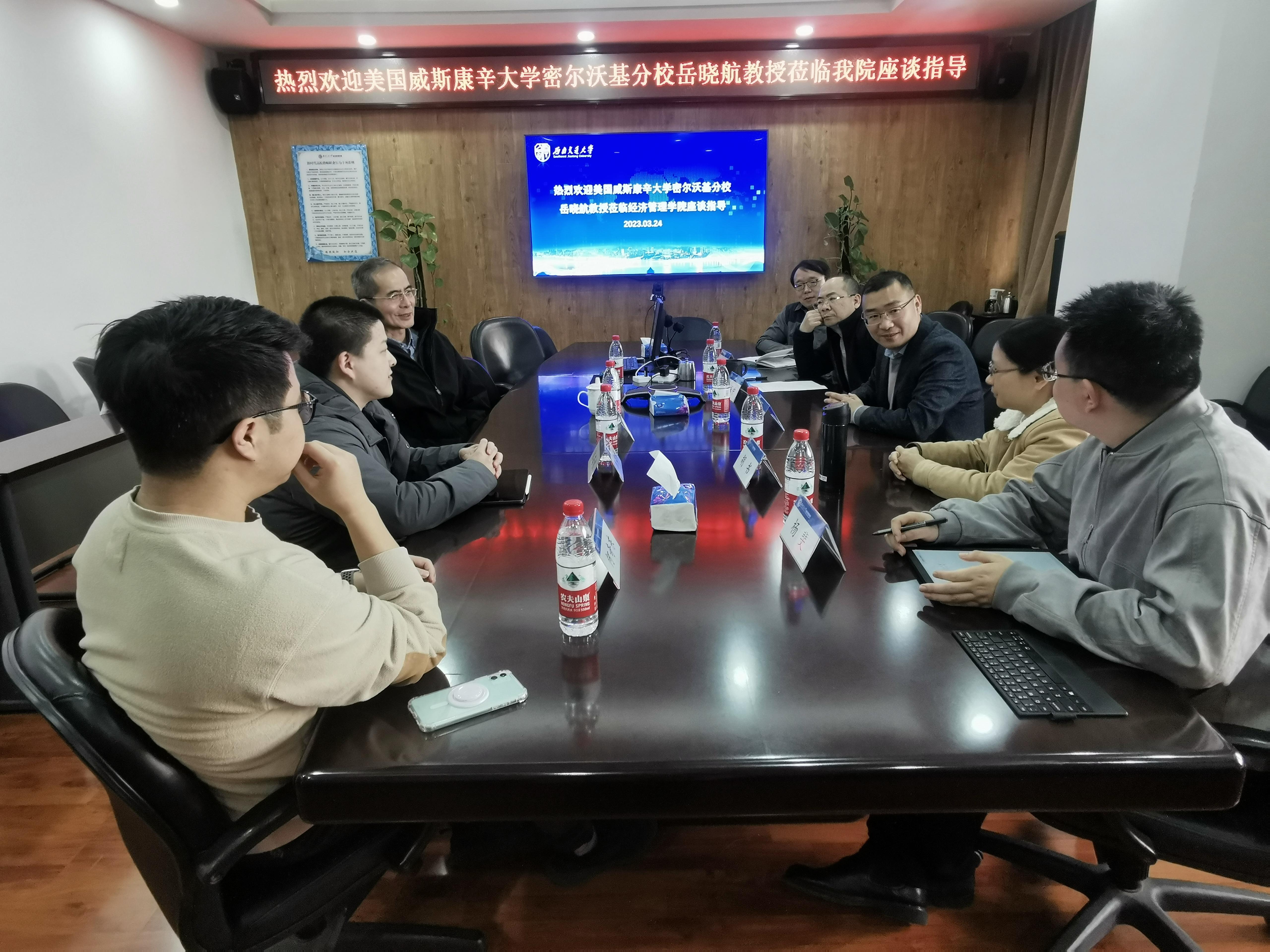 2023年3月24日下午,美国威斯康辛大学密尔沃基分校(The University of Wisconsin-Milwaukee)商学院岳晓航教授应邀来球王会体育座谈指导。会议由球王会体育聂佳佳副院长主持,学院信息系统与运营管理系主任官振中老师以及部分青年教师参与座谈。