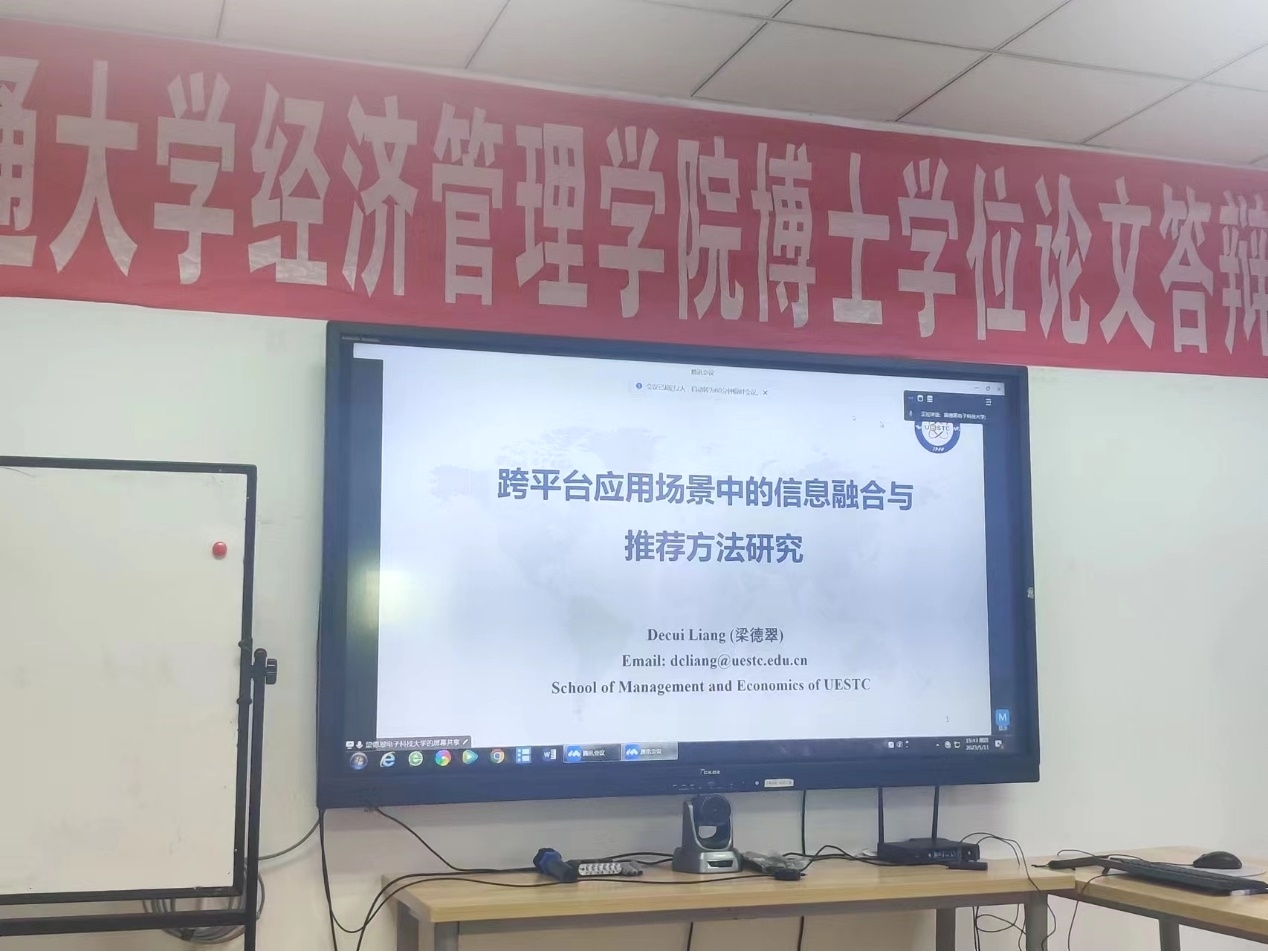 2023年5月11日下午,四川大学董玉成教授和电子科技大学梁德翠研究员应邀在学院0411室分别开展了题为“网络环境下舆情演化的一些理论结果和仿真实验”、“跨平台应用场景中的信息融合与推荐方法研究”的学术报告。球王会体育信息系统与运营管理系刘盾教授主持了此次讲座,学院部分教师及研究生参与了此次学术活动。