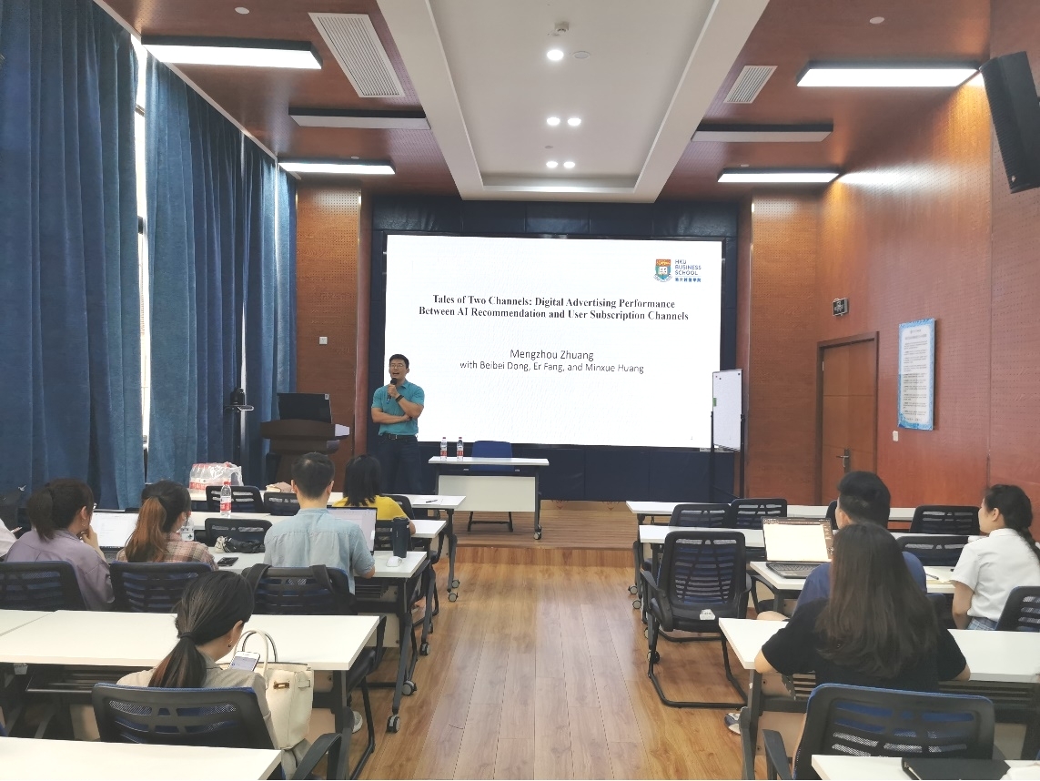 2023年6月25日下午,香港大学商学院助理教授庄梦舟博士应邀在学院0218室开展题为“Tales of Two Channels: Digital Advertising Performance Between AI Recommendation and User Subscription Channels”的学术讲座。讲座由学院市场学系黄缘缘副教授主持,球王会体育部分教师和学生参与了此次学术活动。