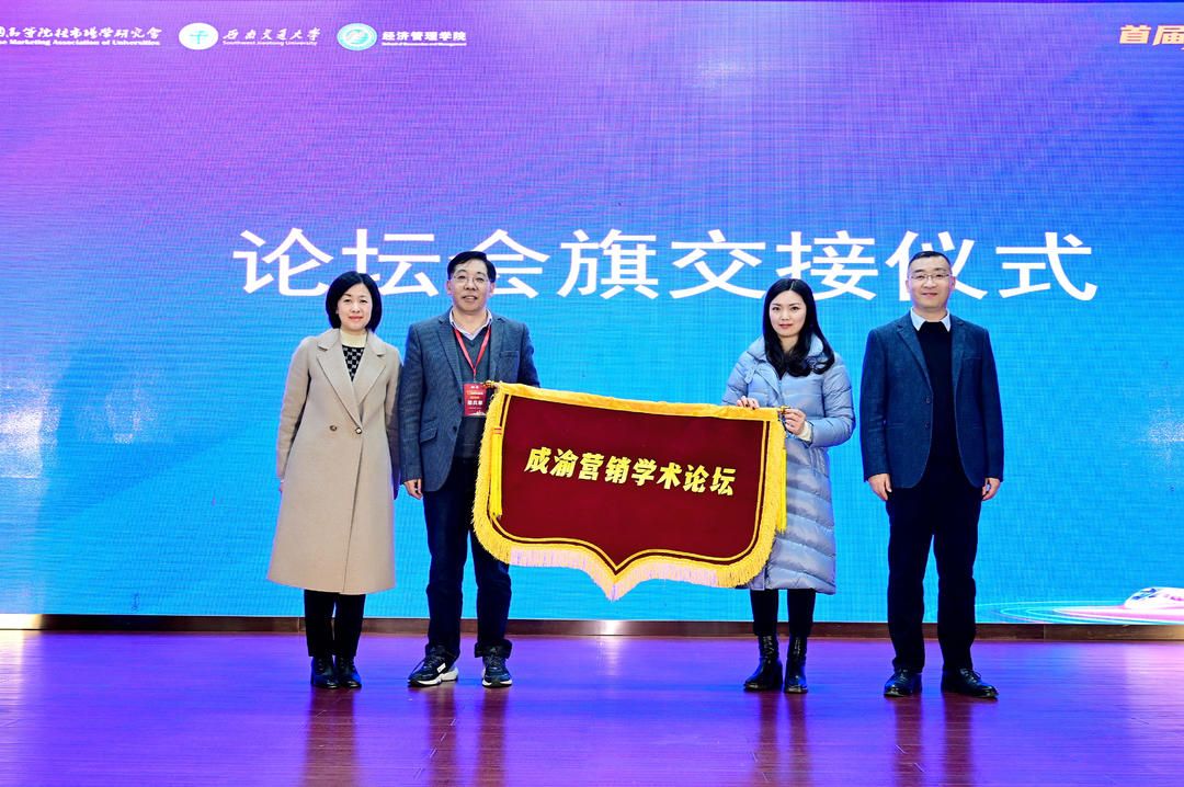 分论坛议程结束后,本次论坛进入尾声。球王会体育市场学系范春梅副教授主持闭幕式。球王会体育聂佳佳副院长、周嘉南副院长与重庆大学邵兵家教授、重庆工商大学江霞老师交接了会旗。周嘉南副院长致闭幕词,她对首届成渝营销学术论坛的顺利举办表示热烈祝贺,对参与本次会议筹备的专家、老师和志愿者们的辛勤付出表示感谢,并代表学院对各位专家学者的莅临表示诚挚的谢意,祝愿川渝两地高校的交流合作在成渝营销学术论坛中不断深化与升华。