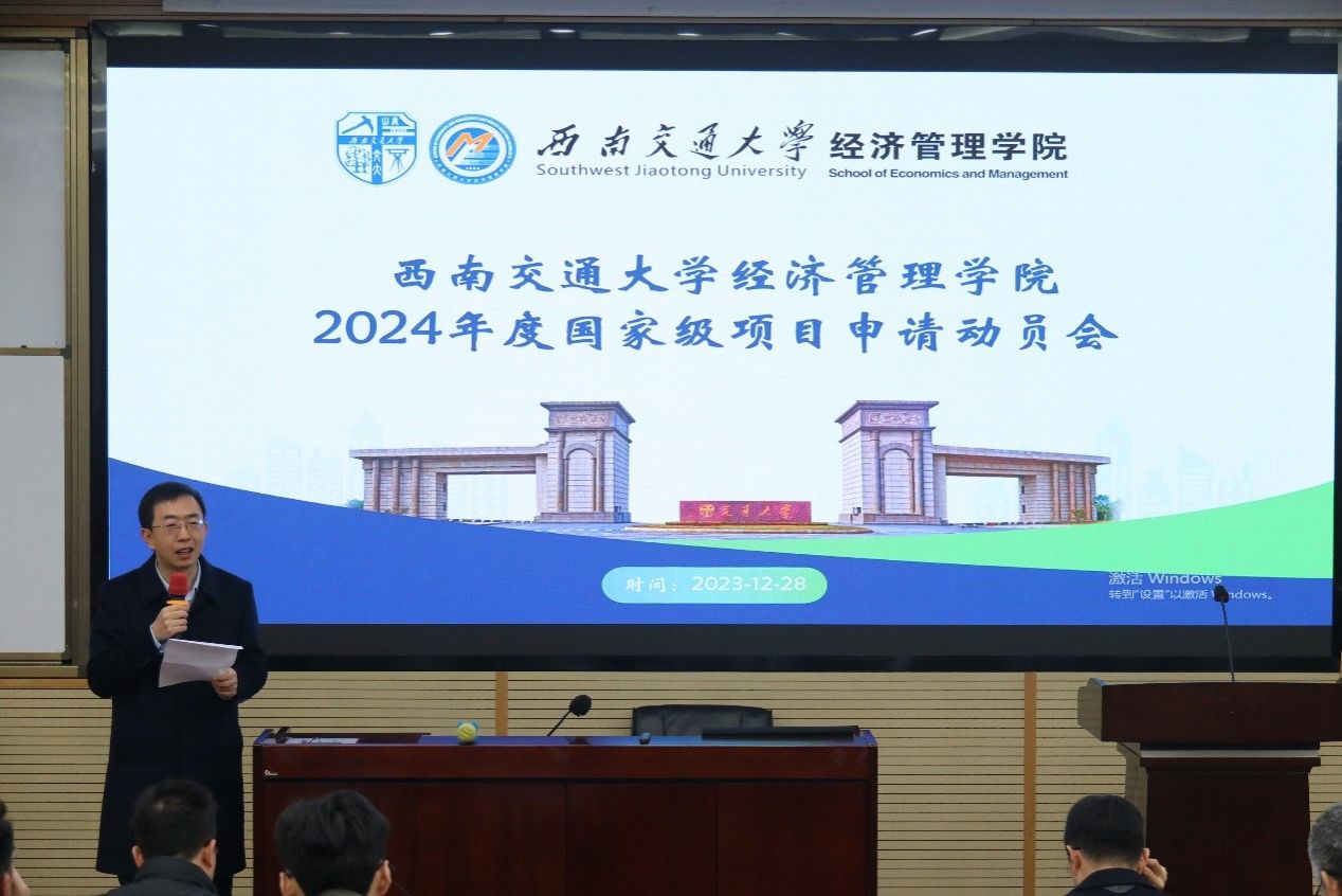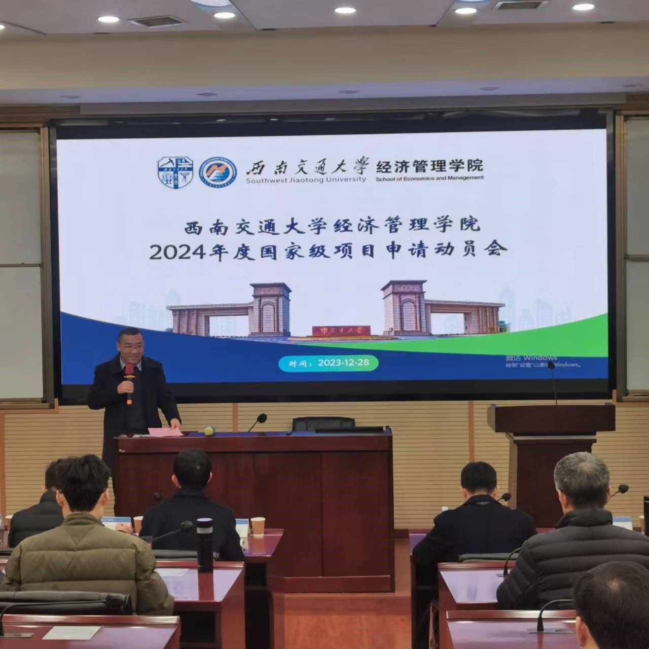 2023年12月28日,球王会体育召开了2024年度国家级项目申报动员会。学院特邀文科学部副主任兼文科处处长李华强、科学技术发展研究院副院长马霖、科研院基础研究管理部基金人才办公室科长刘海龙出席。动员会由球王会体育副院长聂佳佳主持,金融与财务学系教授黄登仕、高增安老师分享了申报自科基金、社科基金的经验,韩科院长做总结发言。全院40余名师生参加了此次动员会。