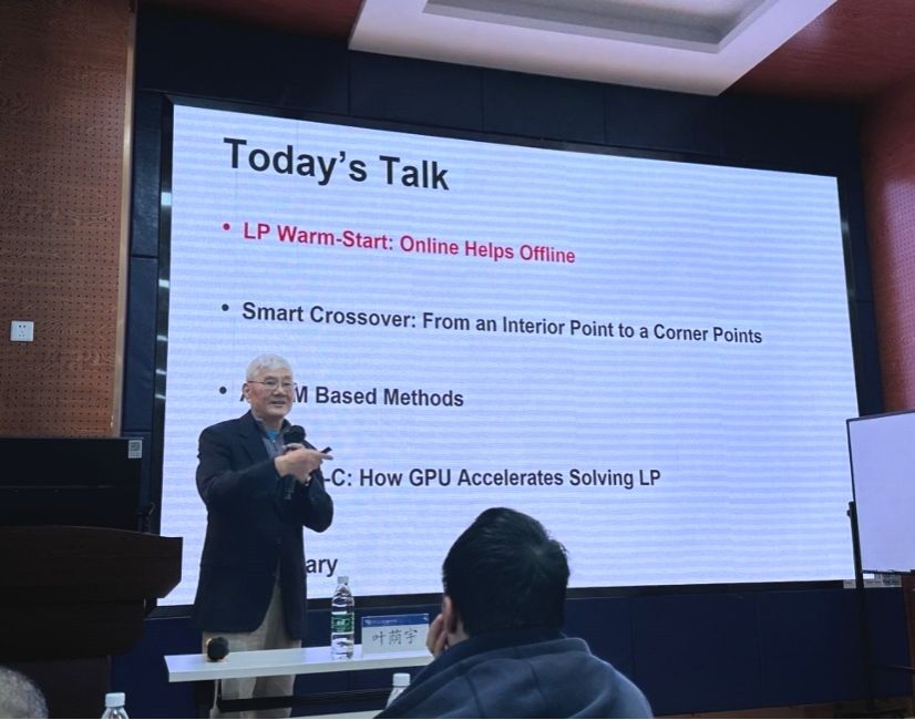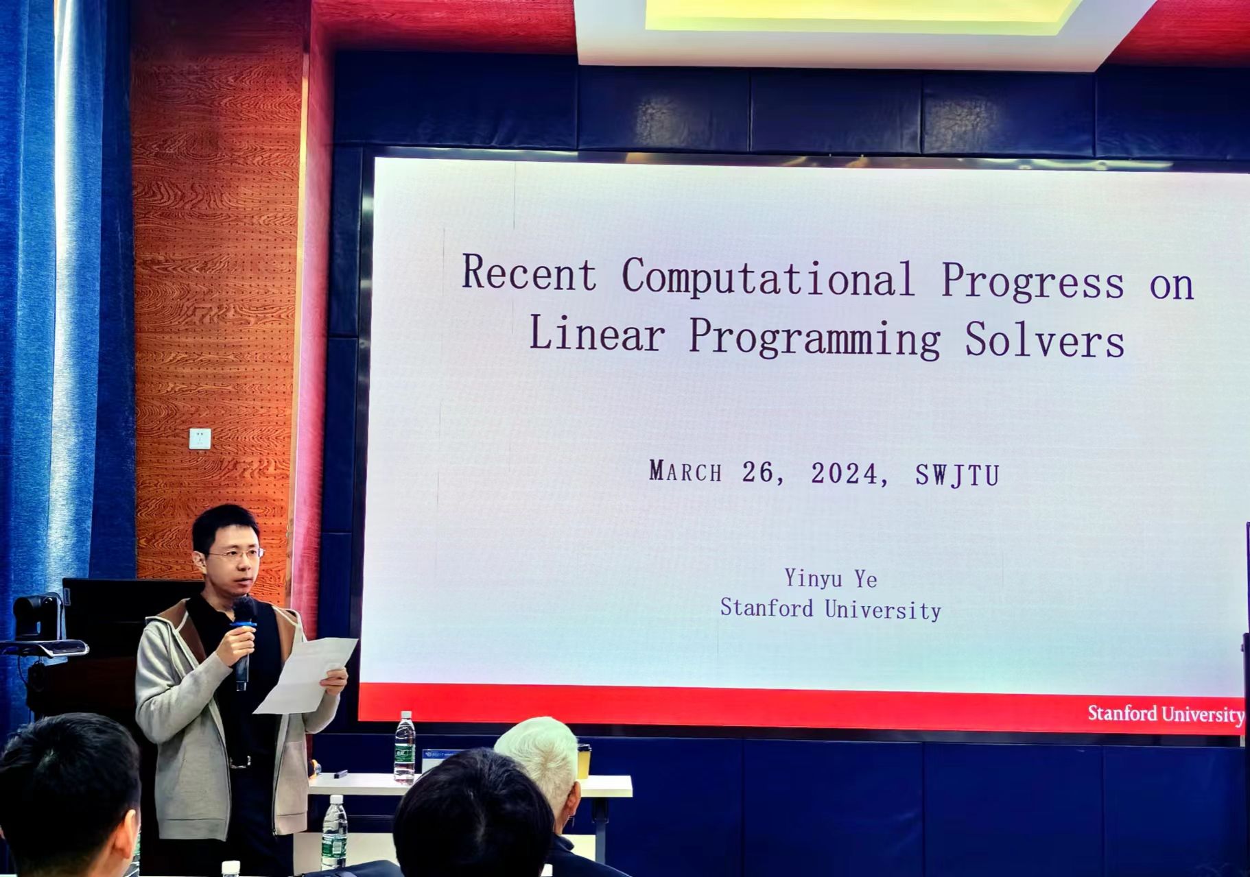 2024年3月26日,美国斯坦福大学叶荫宇教授应邀在球王会体育为球王会体育师生分享题为“Recent Computational Progress on Linear Programming Solvers”的学术讲座。本次学术活动由学院院长韩科教授主持,学院教师及研究生聆听了本次讲座。