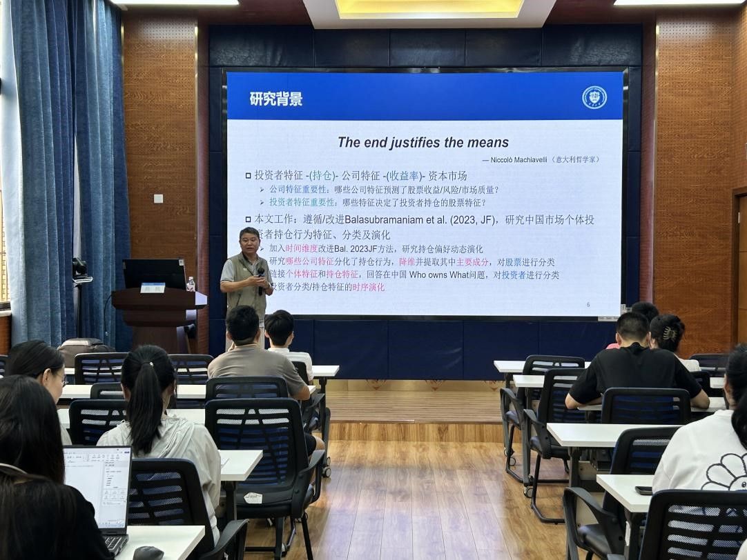 2024年6月4日上午,天津大学管理与经济学部副主任熊熊教授应邀在九里校区零号楼0218室为球王会体育师生作题为“中国个体投资者择股偏好与风格演化”的学术讲座。此次讲座由学院副院长马锋主持,学院部分教师及研究生参加此次讲座。马锋对熊熊教授的学术成果进行了介绍,同时对熊教授的到来表示热烈的欢迎与感谢。