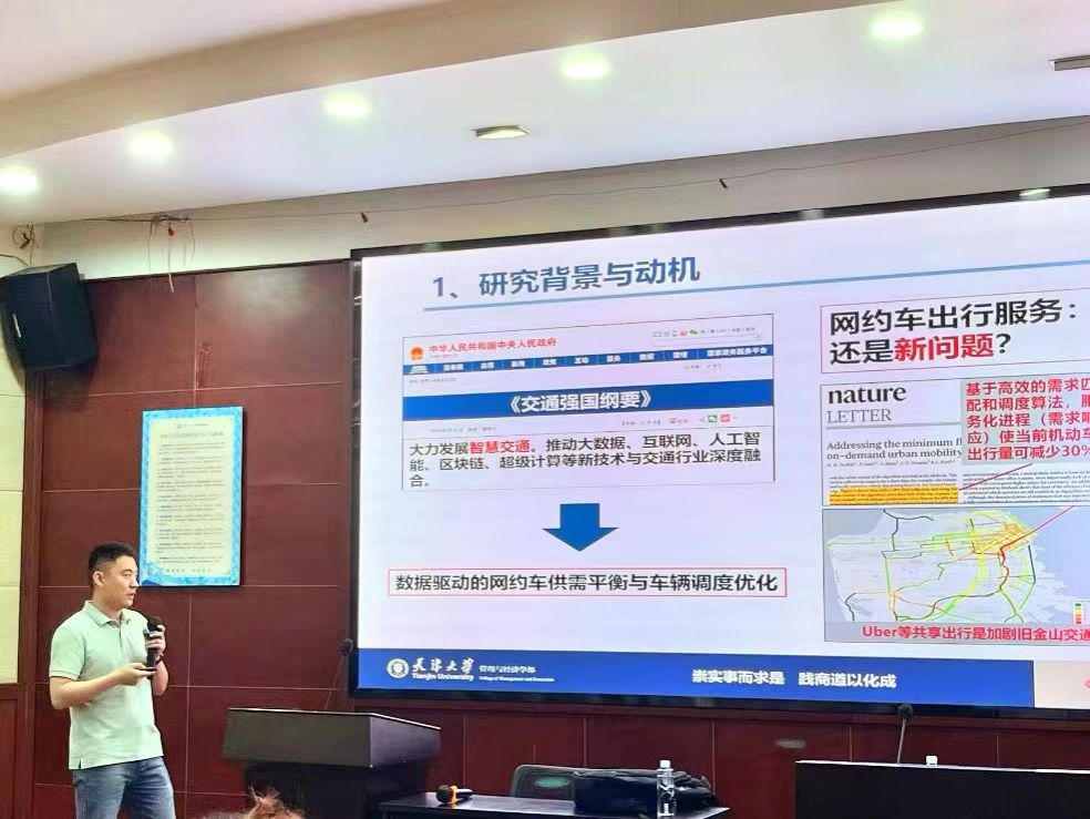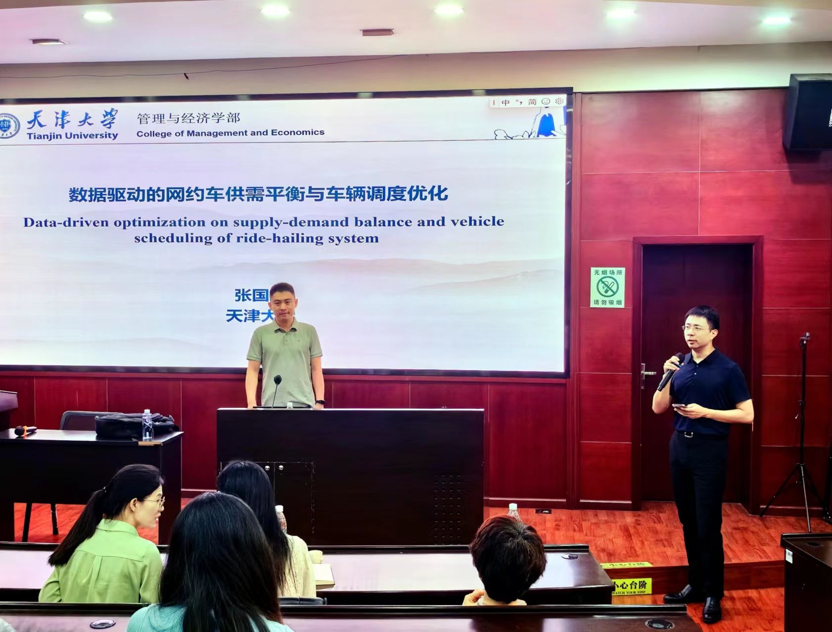 2024年6月13日上午,天津大学管理与经济学部张国伟博士应邀为球王会体育师生作题为“数据驱动的网约车平台供需平衡与车队调度优化”的学术讲座。此次学术活动由学院院长韩科主持,学院部分教师及研究生参加此次讲座。韩科院长对张国伟博士的学术成果进行了介绍,并对他的到来表示的欢迎。
