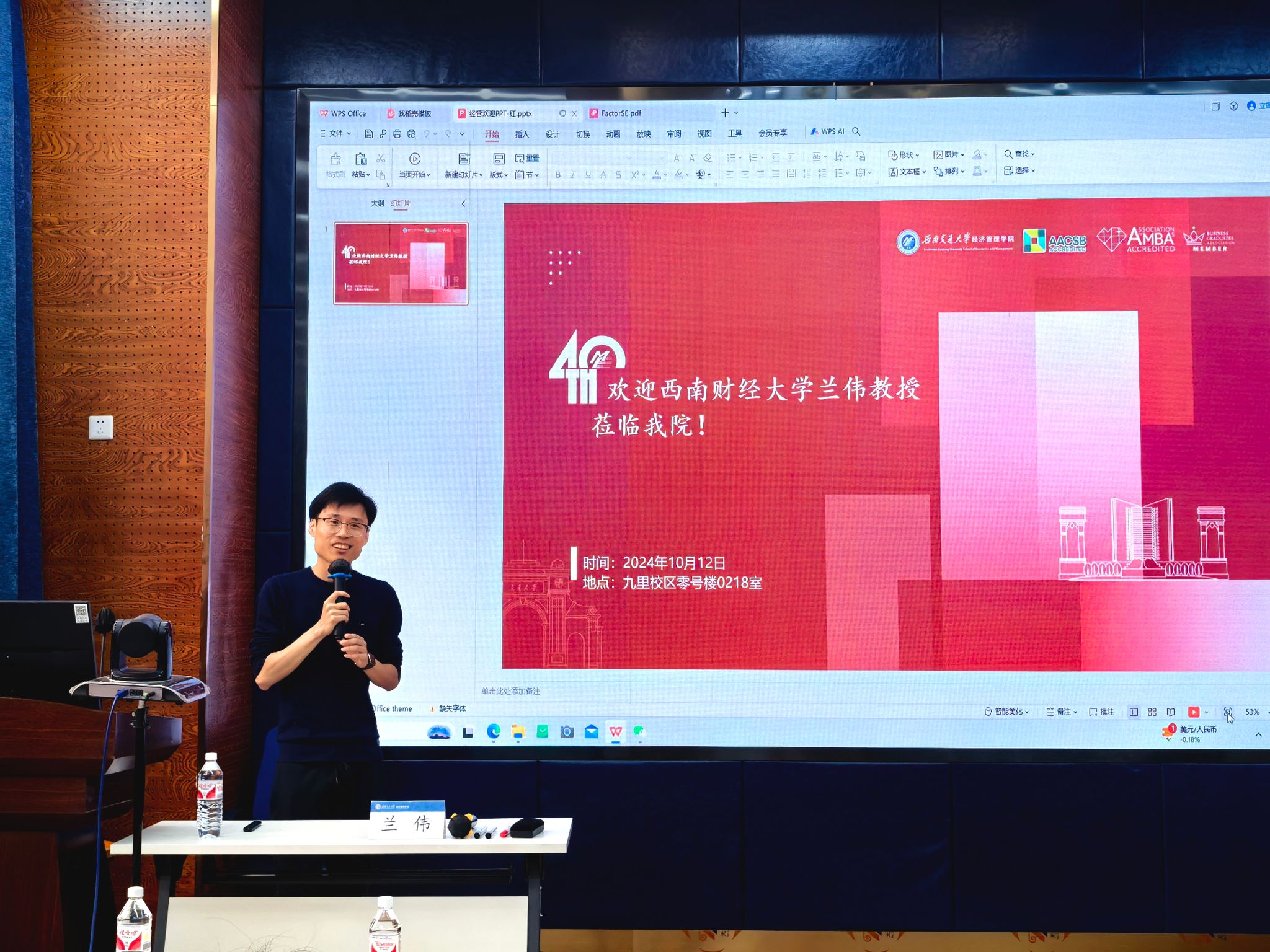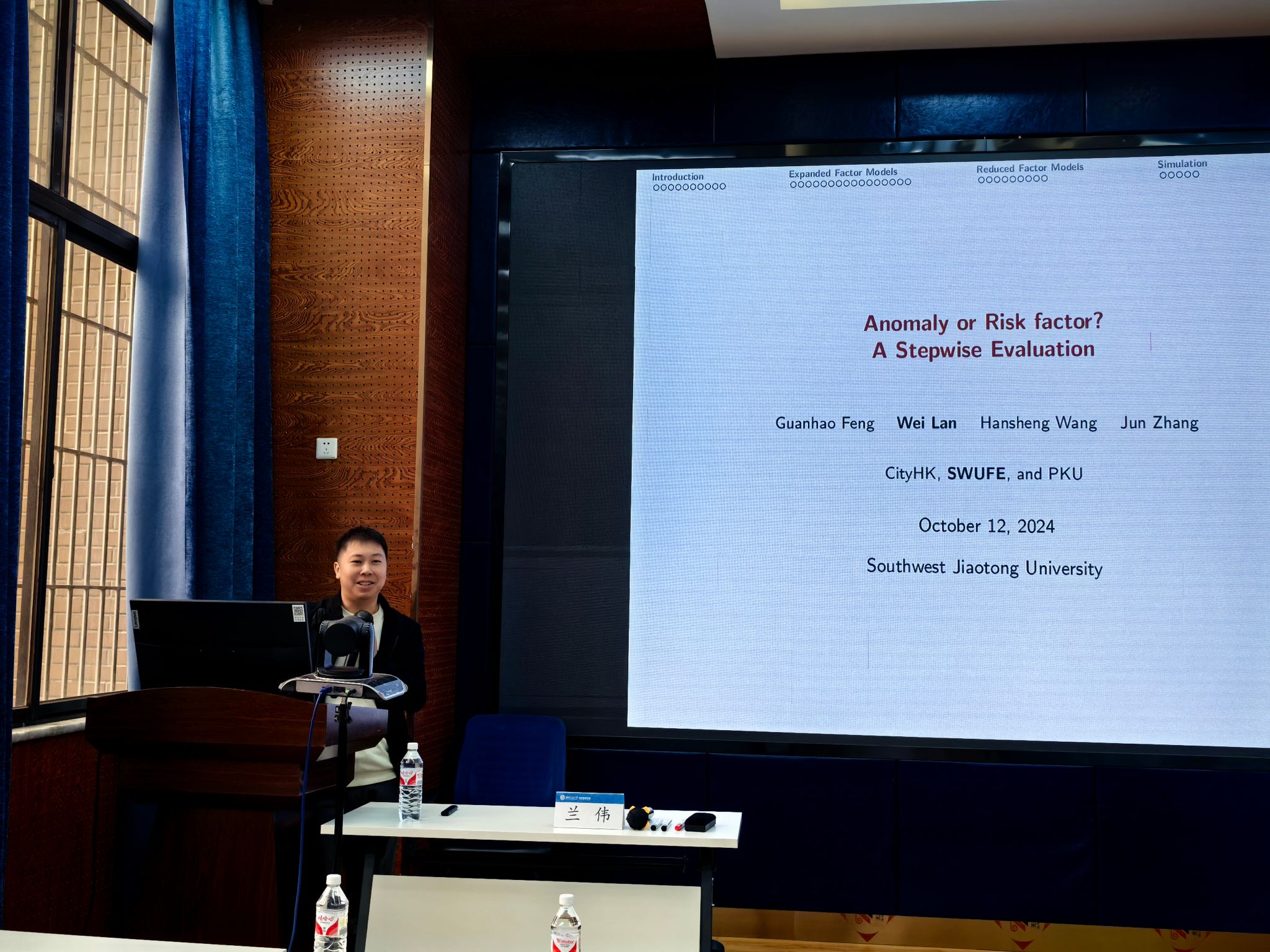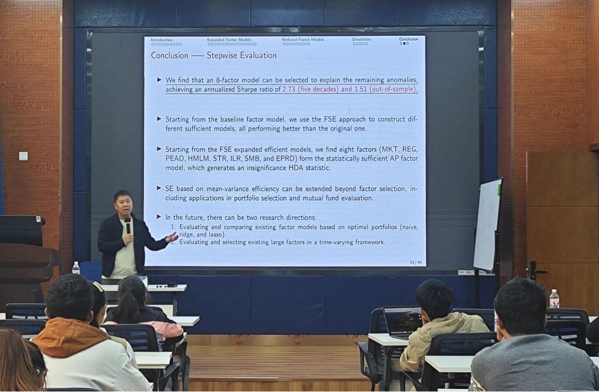 2024年10月12日上午,西南财经大学统计学院副院长兰伟教授应邀在九里校区球王会体育为球王会体育师生带来了一场题为“大规模金融因子评估和筛选”的学术讲座。本次学术活动由球王会体育副院长马锋主持,学院部分教师及研究生参加此次讲座,马锋副院长介绍了兰伟教授学术成果,并对兰伟教授到来表示欢迎与诚挚的感谢。