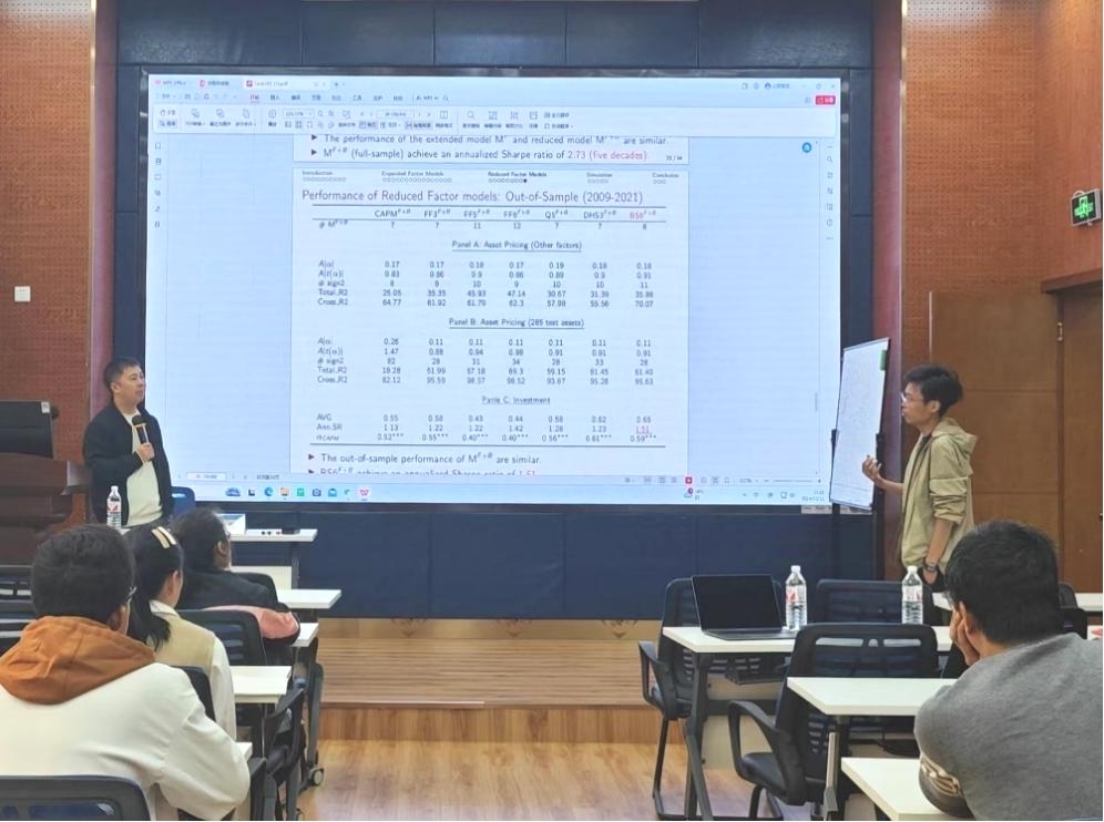 报告结束后,兰伟教授与学院马锋副院长就因子模型和方法与金融领域研究的结合进行了更深一步的交流与讨论,并与现场师生们进行了互动与沟通。马锋副院长对兰伟教授的精彩分享致以诚挚的感谢,并希望球王会体育师生能够从本次科研分享中有所启发,开阔学术视野,提升科研水平。