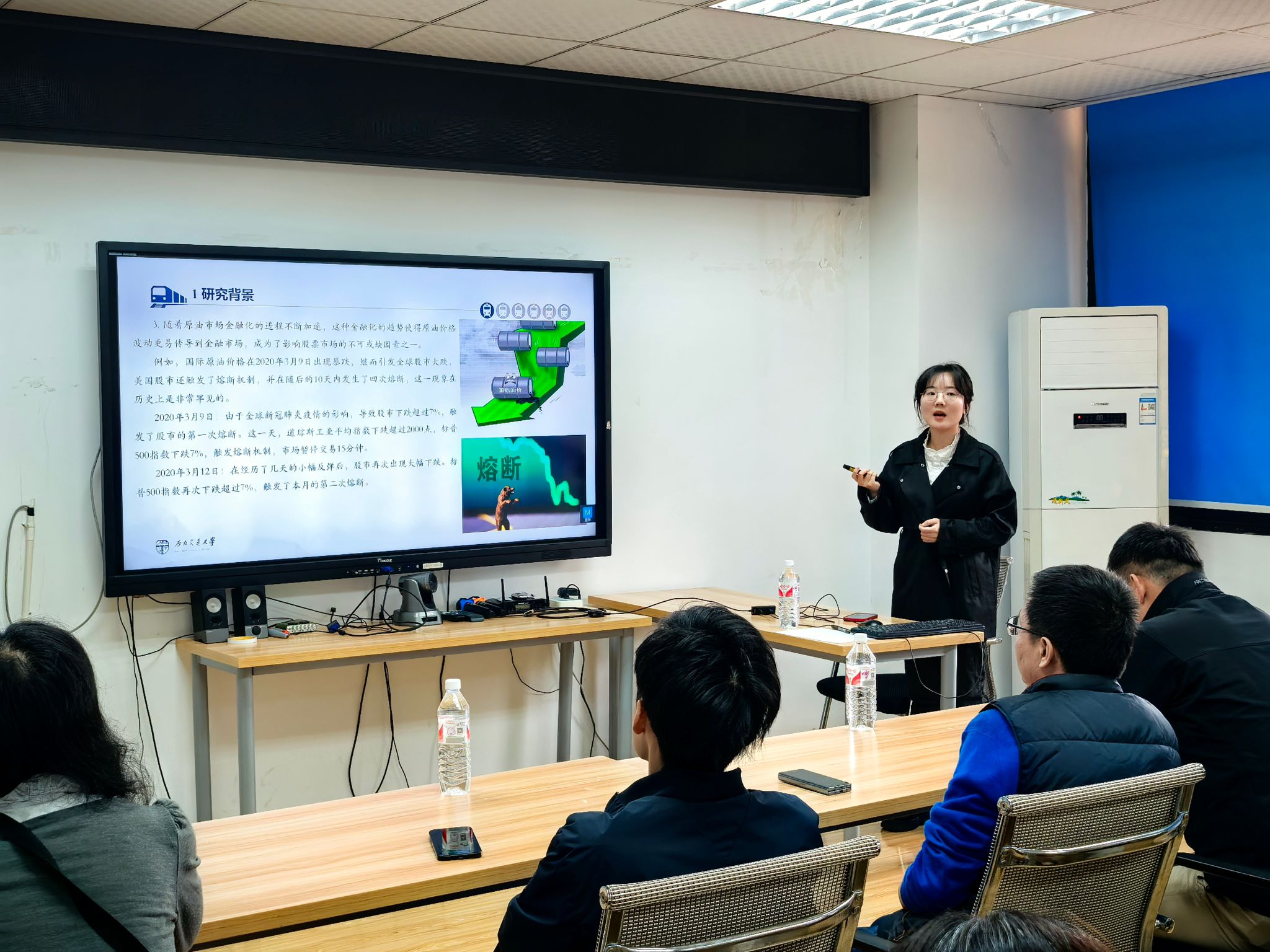 随后,鲁博士概述了现有文献关于原油冲击对股票市场影响的研究进展。她重点介绍了如何基于文本分析方法构建原油冲击,并将现有传统原油冲击与文本原油冲击放到同一框架下,综合探讨原油冲击对股票市场收益率的影响。