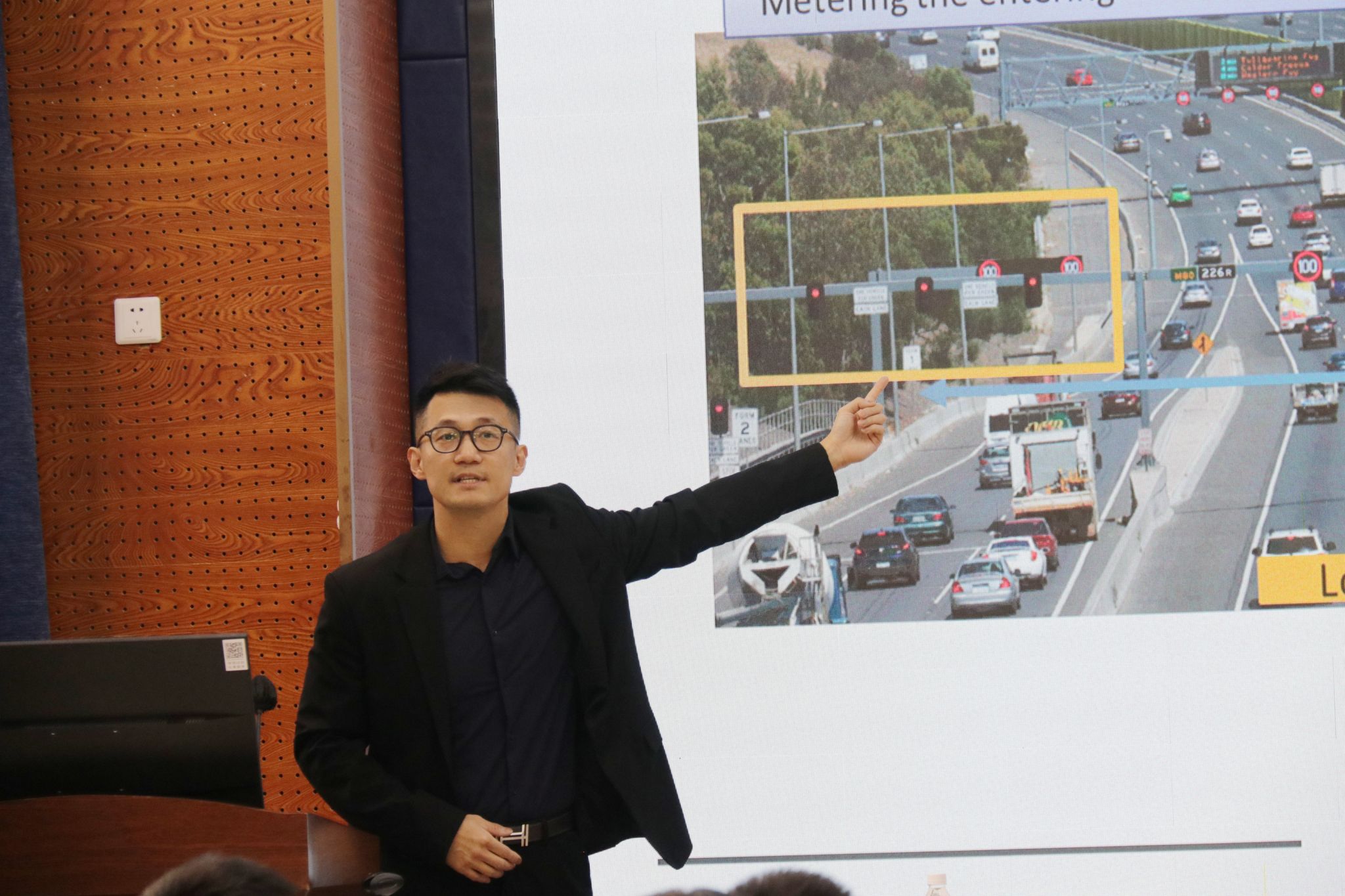 郑楠副教授首先概述了他的研究方向,涵盖交通流建模与控制基本理论及数据驱动交通研究等各个领域。郑楠副教授分享了他在这一领域的重要工作,他介绍了宏观交通流模型及其性质、路网级交通控制策略及实时交通流控制方法、基于宏观交通流理论的建成环境和空间集计事故分析,展示了他在交通流建模方面研究的实际应用成果。