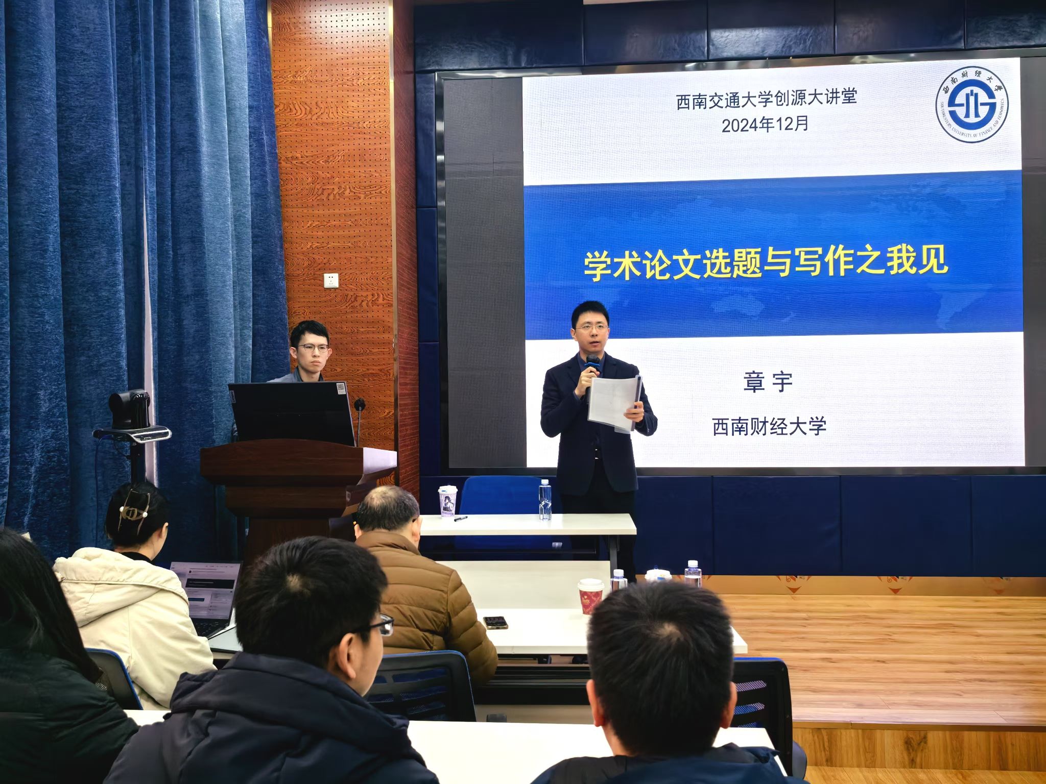 2024年12月11日上午,特邀西南财经大学章宇教授为球王会体育为师生带来了一场题为“学术论文选题与写作之我见”的学术讲座。本次学术活动由学院院长韩科教授主持,学院学系教师及研究生70余人参加此次学术活动。